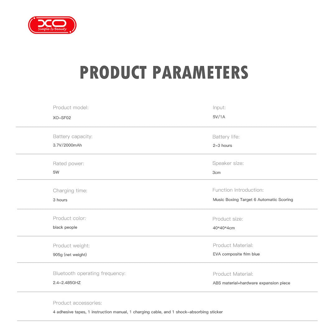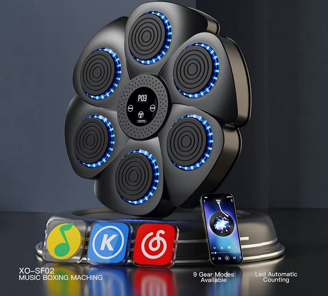 The XO SF-02 Musical Boxing device features a six‑zone target layout with built‑in RGB light feedback. When activated, targets light up in specific colors to guide strikes and trigger rhythm‑based reactions. Sound feedback supports hand‑eye coordination while creating a more engaging training rhythm. Lighting sequences are designed to match user tempo, providing a visually driven workout session that enhances response timing. The main board hosts the interactive core, simplifying the user experience with intuitive design. With this combination of sound and color cues, the XO SF-02 Musical Boxing unit transforms basic training into a rhythm‑enhanced exercise pattern.